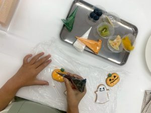 ハロウィンクッキーにアイシングしたりとお菓子作りを楽しんでくださいました。