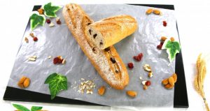 香ばしいライ麦粉を使用したフランスパンに、甘酸っぱいクランベリーと香ばしいアーモンドを混ぜ込みました。