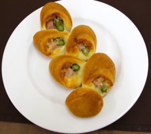 企業との教育連携として製パン研究ゼミを行い、その中で5種類のパンを作りました。
