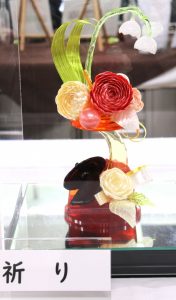 学生個人が自由にテーマを設定し、アメ細工で華やかなピエスモンテを制作しました。