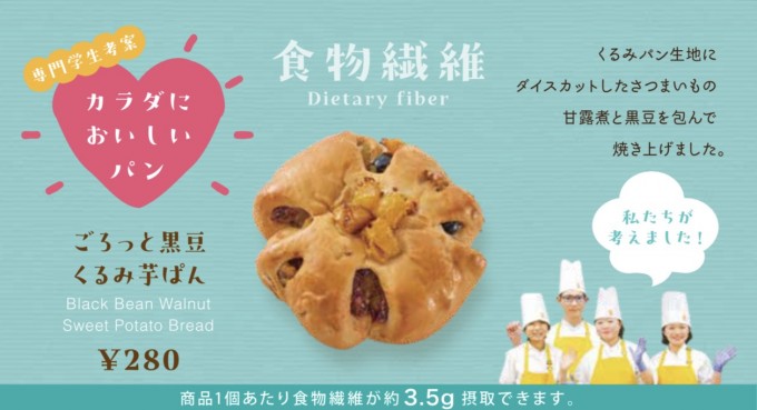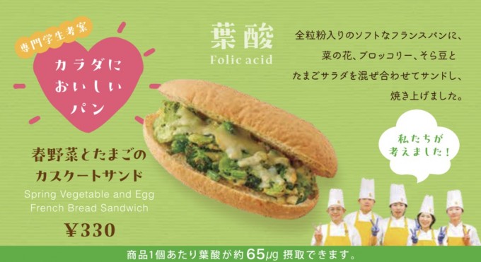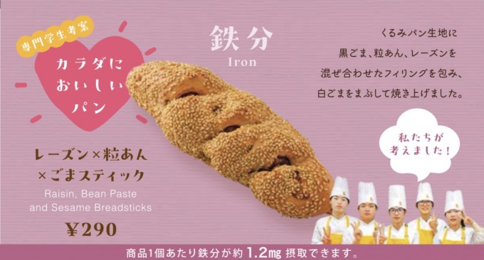 カルシウム、鉄分、タンパク質など、おいしく栄養を摂ることができるパンを共同開発。企業の方にもご意見をいただきながら、食べやすさに考慮して具材等レシピの改良を重ねました。